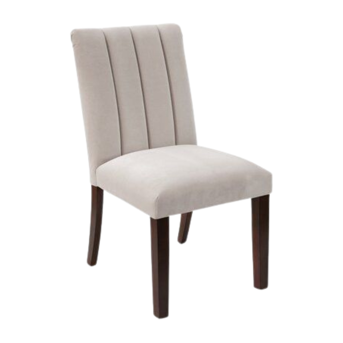 Cette chaise élégante en velours beige présente un dossier capitonné à coutures verticales, offrant un confort raffiné et un style intemporel. Ses pieds en bois foncé renforcent son allure chic, parfaite pour la salle à manger ou une décoration sophistiquée.