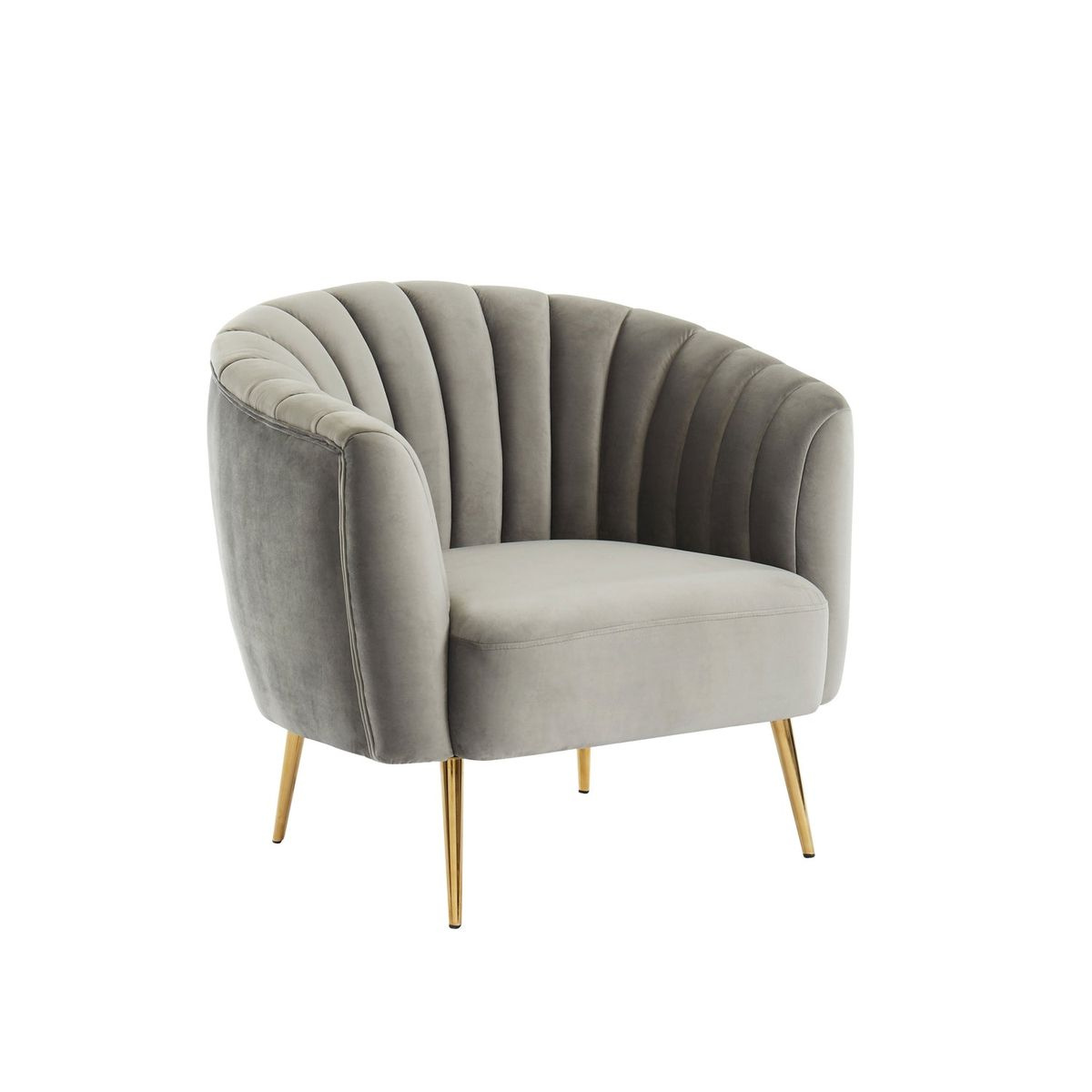 Avec son revêtement en velours gris et ses coutures verticales élégantes, ce fauteuil allie confort et sophistication. Ses pieds dorés apportent une touche moderne et chic, parfaite pour sublimer un salon ou un coin lecture.
