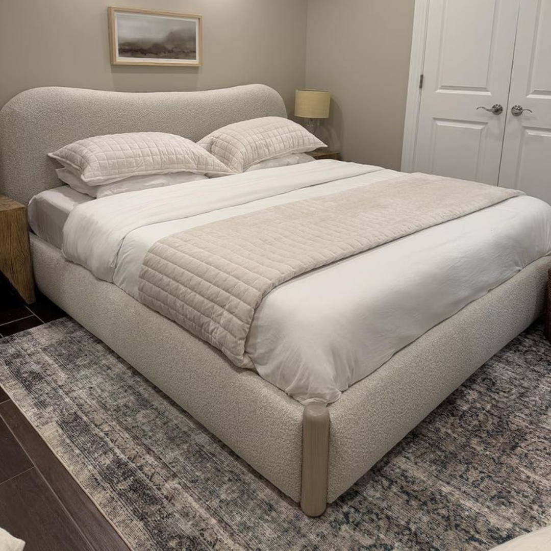 Alliant simplicité et élégance, ce lit en tissu bouclé beige offre une allure douce et naturelle. Sa tête de lit légèrement courbée crée une atmosphère apaisante, idéale pour les chambres modernes et minimalistes. Confortable, raffiné et intemporel, il s’intègre harmonieusement à tous les styles de décoration.