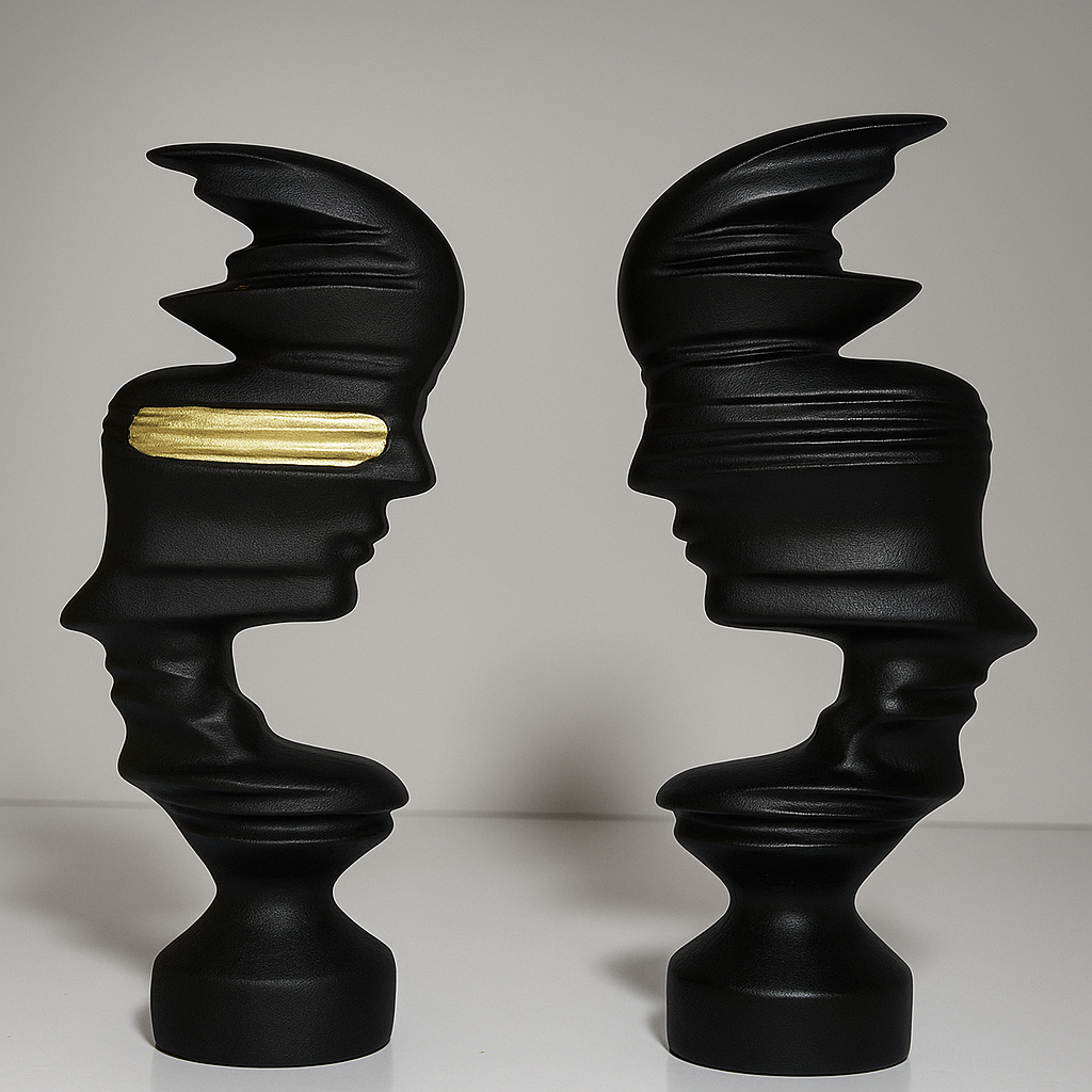 Apportez une touche d’art contemporain à votre intérieur avec ces sculptures décoratives en résine noire, sublimées par de fines touches dorées. Leur design abstrait et expressif évoque l’harmonie et le dialogue, faisant de ces pièces de véritables œuvres d’art modernes. Élégantes et audacieuses, elles s’intègrent parfaitement dans un salon, un bureau ou une entrée pour une décoration chic et sophistiquée. Idéales pour les amateurs de style contemporain et minimaliste, ces sculptures ajoutent une note de caractère et d’originalité à tout espace.