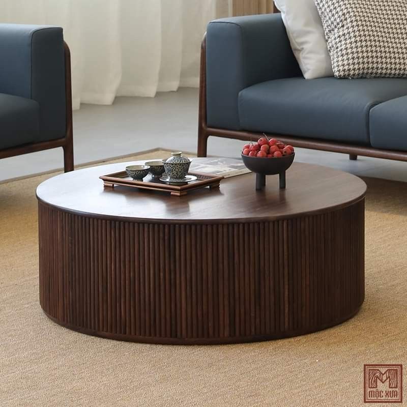 Élégante et robuste, cette table basse ronde est entièrement réalisée en bois foncé avec une finition striée sur son pourtour. Son design à la fois moderne et chaleureux en fait une pièce maîtresse idéale pour un salon contemporain ou classique. Pratique et esthétique, elle offre une large surface pour vos objets déco, vos livres ou vos moments conviviaux autour d’un café.