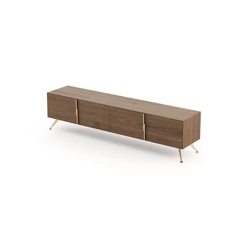 Il repose sur des pieds métalliques inclinés à la finition raffinée, apportant à la fois stabilité et une touche sophistiquée. Ses compartiments frontaux, dotés de portes à ouverture push-to-open, offrent un vaste espace de rangement dissimulé pour vos appareils électroniques, accessoires multimédias et objets du quotidien.